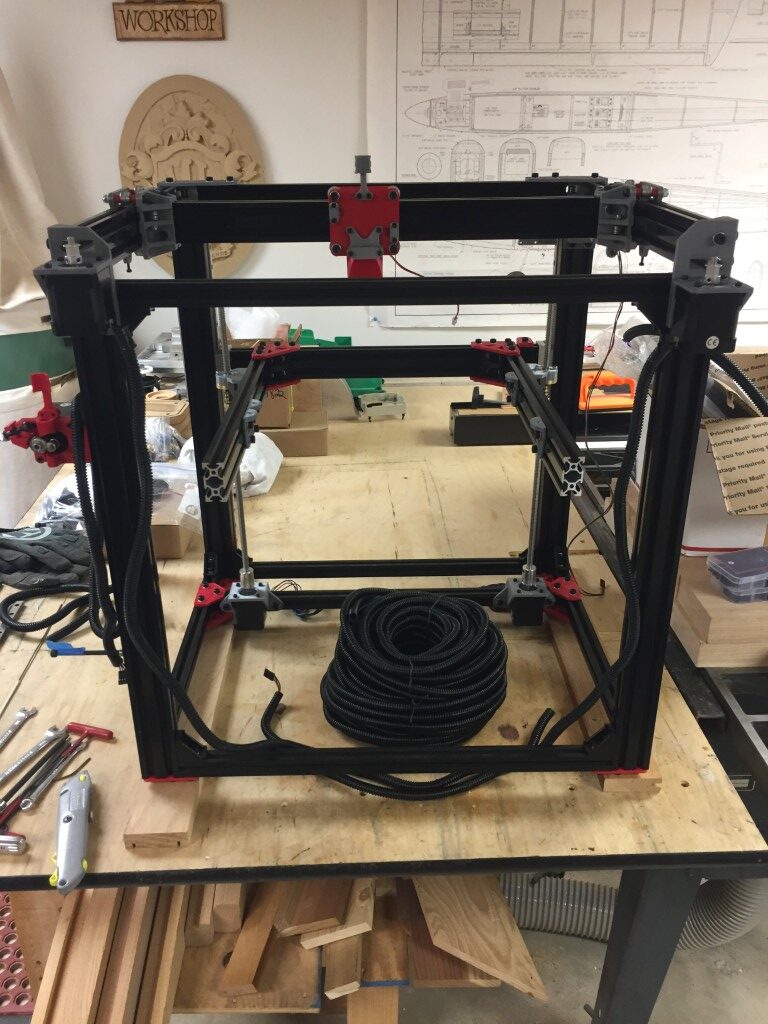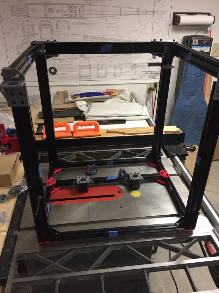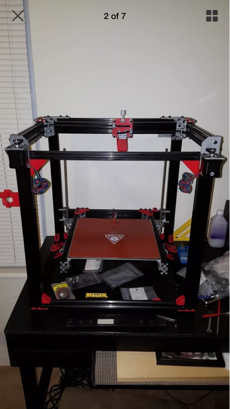 When I bought this kit, 3D printers were just coming onto the market, they weren’t as popular as they are today and mainstream printers were just expensive, so this was a great budget way to get into the space. The kit I purchased was a CoreXY design, it had a large print space 320×320 and was reasonably priced, a couple hundred dollars, if I recall. It came with all the extruded aluminum and 3D printed parts that would make up the machines structure, the electronics and hot end were not included…