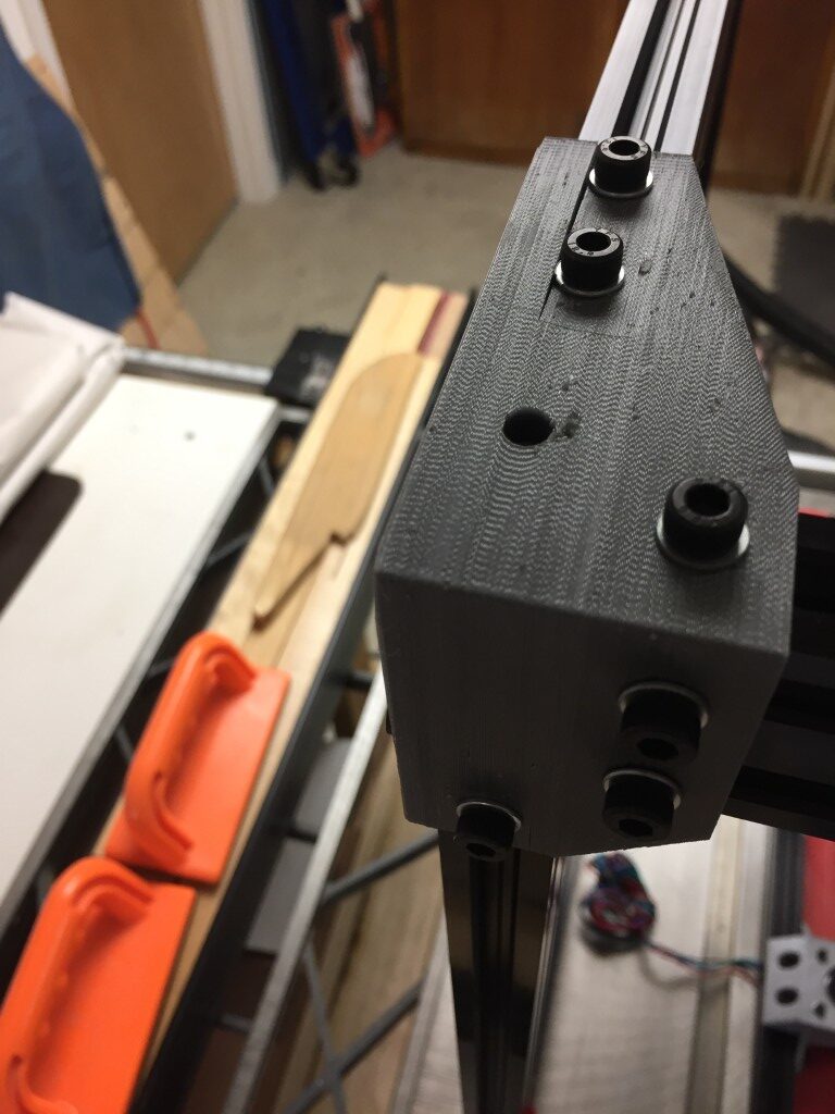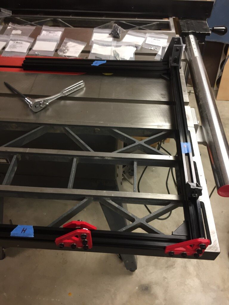 The assembly was pretty straight forward, lots of nuts and bolts… I was surprised at the accuracy and quality of the parts. The kit came with a defective part though, one of the corners had a split, but it didn’t seem to impact the assembly or rigidness of the machine.