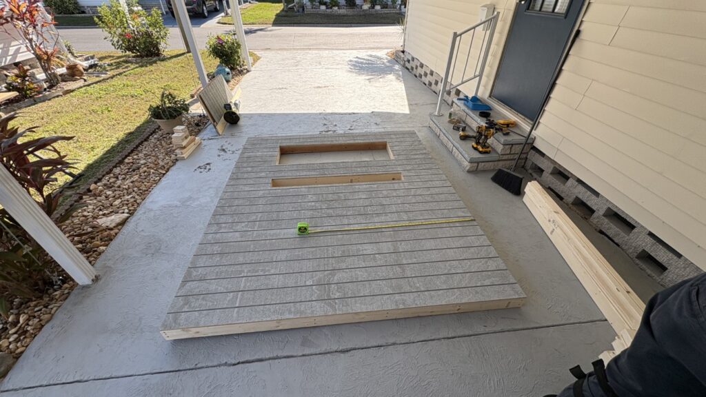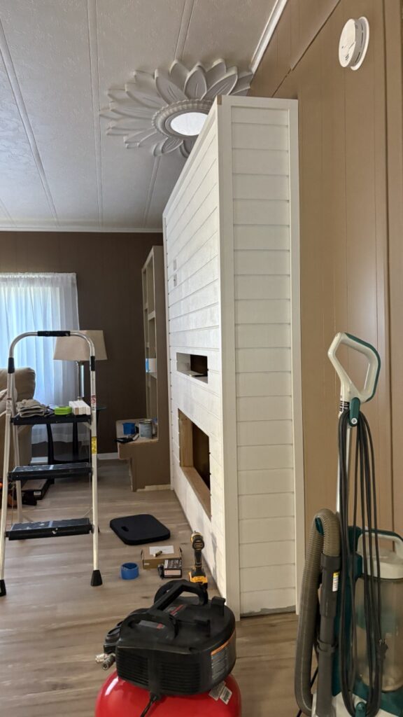 The wall was faced outside and then carried in… after it was put in place it was without a doubt about 6″ too tall.. so back outside it went, and we shorten the wall, ugh!